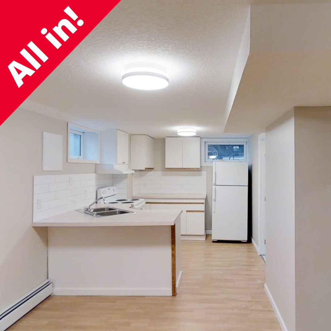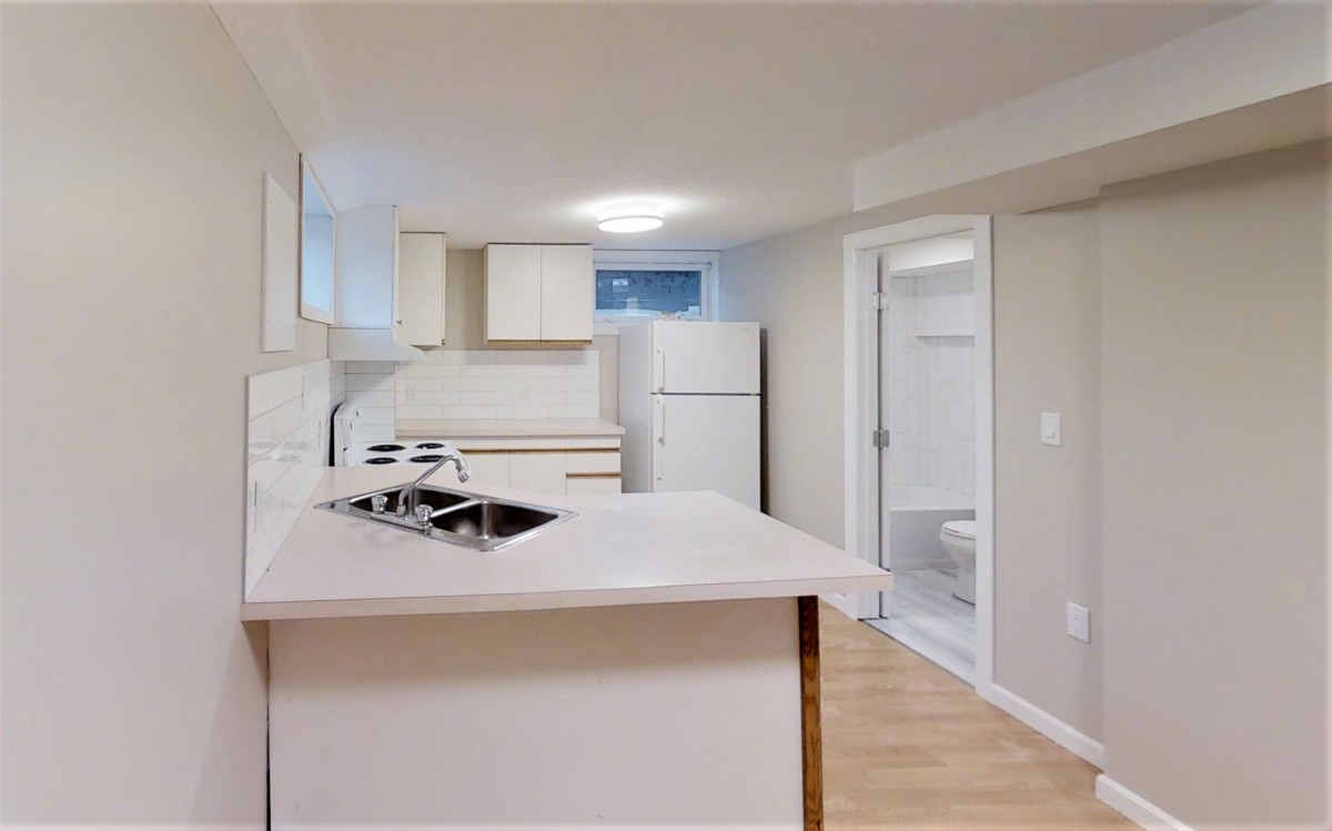 This beautiful lower level suite would be ideal for a mature couple or roommates. Enter through the shared side entrance and down the stairs into the bright open concept kitchen, dining and living area! This open concept layout is generous in size and the perfect place to entertain family and friends. The kitchen features white tile back-splash that gives it a clean modern feel and plenty of counter space that’ll make meal prepping a breeze. The full bathroom located off the kitchen has stunning modern finishes including a white vanity with under counter storage. Make your way down the hall two bedrooms including the spacious primary bedroom with a closet for your wardrobe! To complete this home is the shared laundry area located at the bottom of the shared entrance.