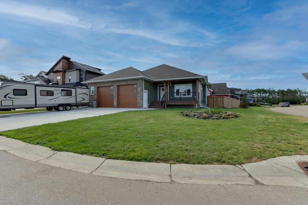 In the high end neighbourhood of Grand Banks, find this stunning 4 bedroom home. Walk into a bright entry way with tiled floors with a coat closet and access to the heated double car garage. Off of the entry way is a bright bedroom that would also make a wonderful office. The living room is breathtaking with high ceilings featuring exposed wood beams and gas fireplace. The kitchen boast stone countertop, a large kitchen island, steam oven, and high end appliances. The primary bedroom is conveniently located on the main floor and includes a beautiful en-suite with a luxurious tile shower and a double-sink vanity. Downstairs, you’ll find a spacious family room, two additional bedrooms, and a full bathroom, perfect for extra living space or guests. Step outside to a fully fenced backyard featuring a stunning covered deck, ideal for enjoying your morning coffee or relaxing in the evening.